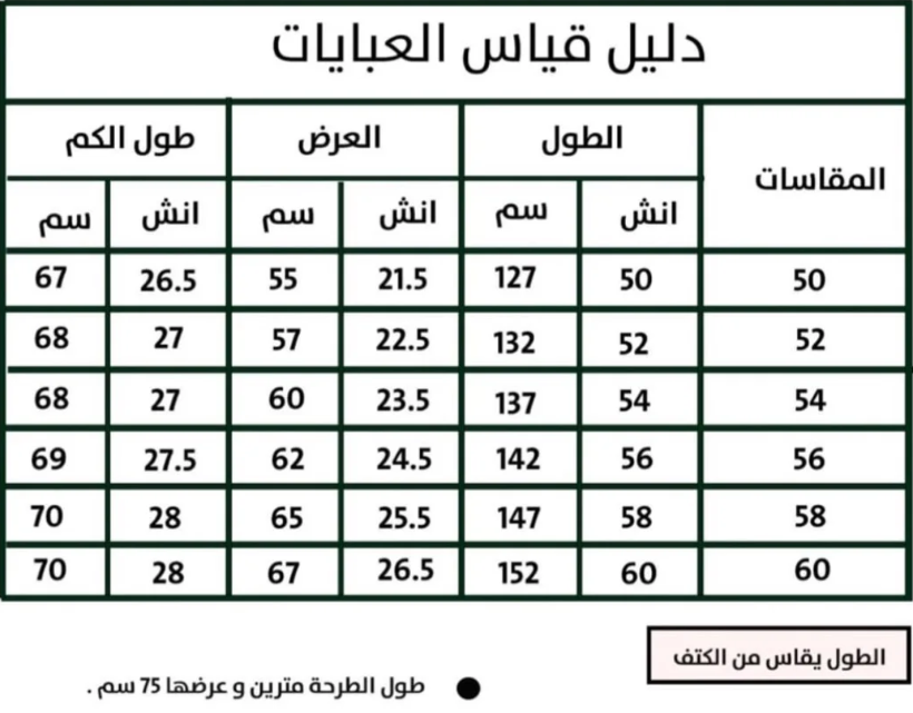 جدول مقاسات